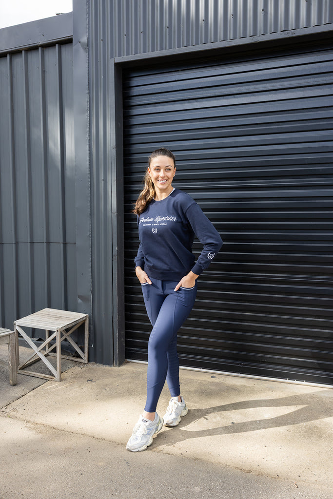 The Heritage Sweater is a modern take on vintage varsity style. Crafted for comfort and functionality on and off the horse, the Heritage Sweater is the perfect staple for your equestrian wardrobe.
